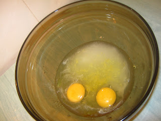 First of begin by cracking 2 eggs in a heat proff bowl like so , and if you got a tiny little egg shell part like i got there just use the other half of the egg shell to get it out , if u try to get it out using your fingers u'll just waste a lot of time and u'll just get gooey and messy and that's a big No No !